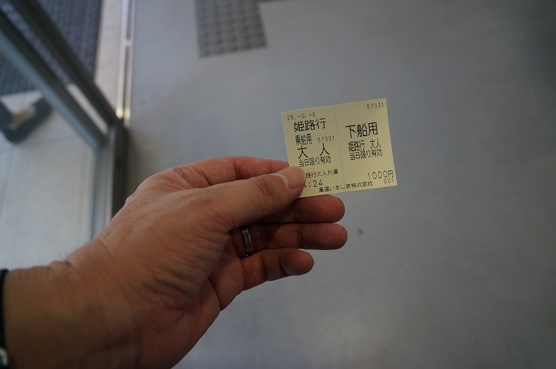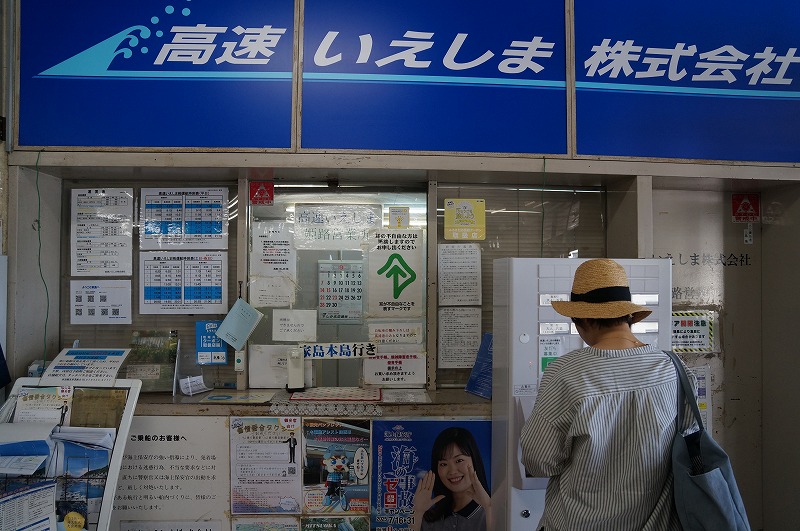 昭和63年~平成5年ごろの雰囲気が漂う切符売り場で乗船券を購入します。